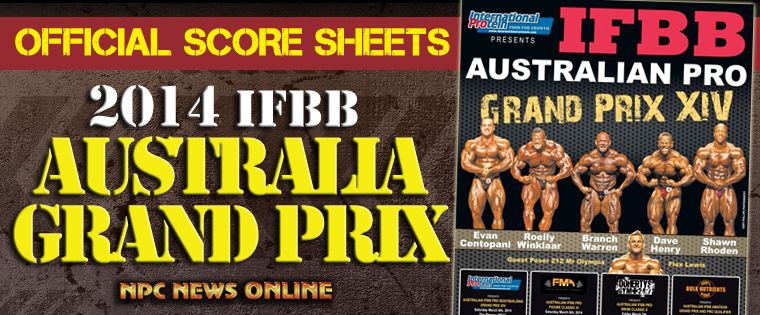 2014 IFBB Australia Grand Prix Score Sheets March 8, 2014March 8, 2014Articles, Featured Contests, Features, Reports SHARE Facebook Twitter Pinterest Score Cards from the 2014 IFBB Australia Grand Prix March 8, 2014