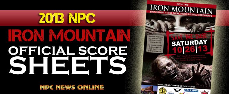 October 28, 20132013 NPC Iron Mountain Championships: Official Score SheetsOfficial Score Sheets from the 2013 NPC Iron Mountain Championships