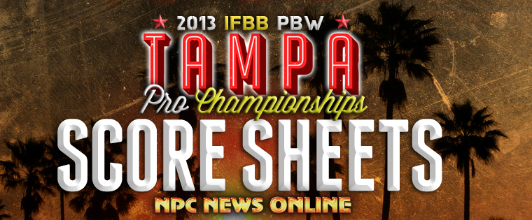 August 10, 20132013 IFBB PBW Tampa Pro Championship: Score SheetsAugust 9-10th – 2013 IFBB PBW Tampa Pro Official Score Sheets. See the full galleries here! BIKINI FIGURE FITNESS MEN’S BODYBUILDING …