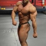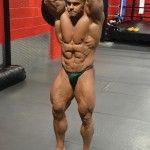 Lukas Osladil 212 lb IFBB pro bodybuilder from Prague, Czech Republic practicing his posing for the 2014 Arnold Classic at the East Coast Mecca. These photos are candids and are not photoshopped.