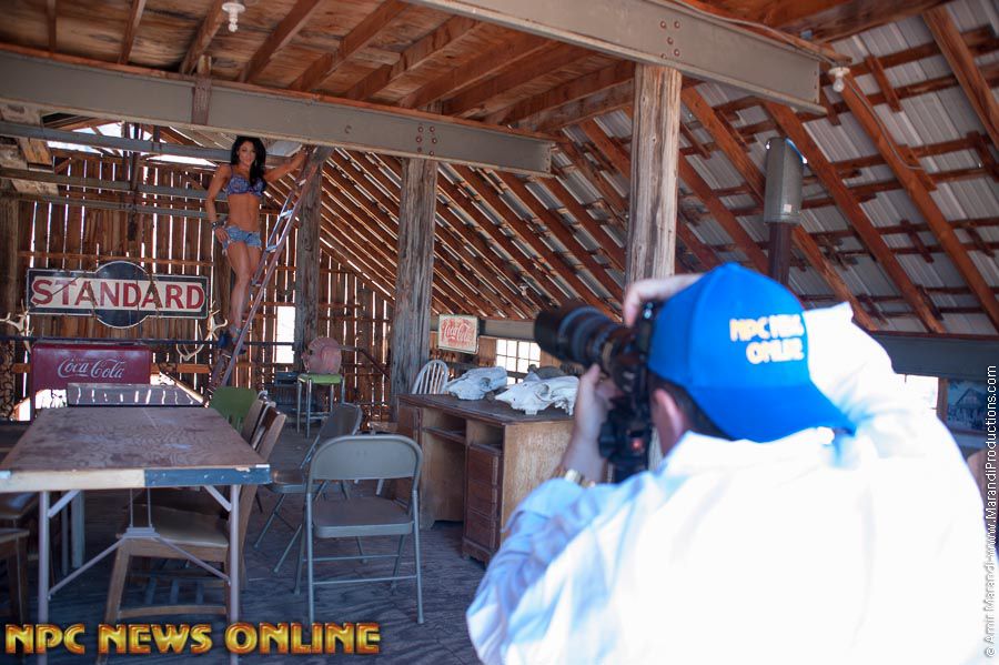 On the Sunday after the 2013 IFBB Olympia’s, NPC News Online photographer J.M. Manion took IFBB Olympia athlete’s Amanda Latona, Candice Keene, Mallory Haldeman and Jason Poston out to the Eldorado Canyon Ghost Town for a full day photo shoot. The NPC News Online crew consisted of Amir Marandi shooting Behind The Scenes photos and video, Ron Avidan shooting video and Behind The Scenes photo and Johnny Cortese holding the light disk. All of J.M. Manion’s photos are unedited with no retouching. “The whole photo shoot was a collaborative effort by me, the athlete’s and my crew,” Manion stated. “Everything just clicked on this shoot. For me the key to much of this was using the dual-sided light disk for all the photos. No flashes were used at all. This is what I feel adds to a more natural and occasional unique look to the photos.”