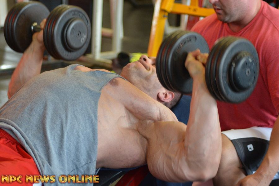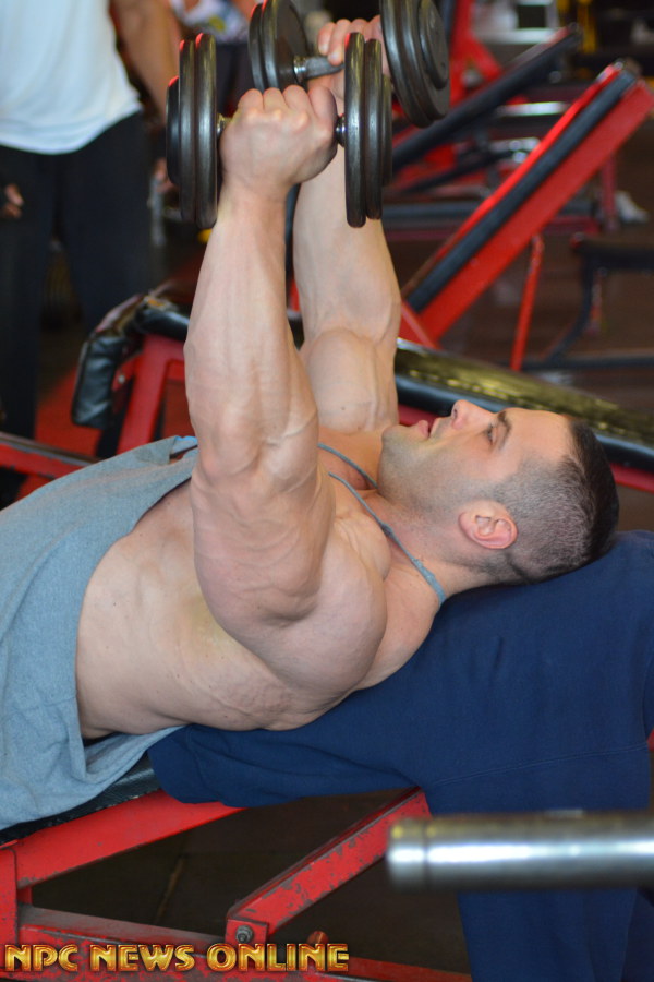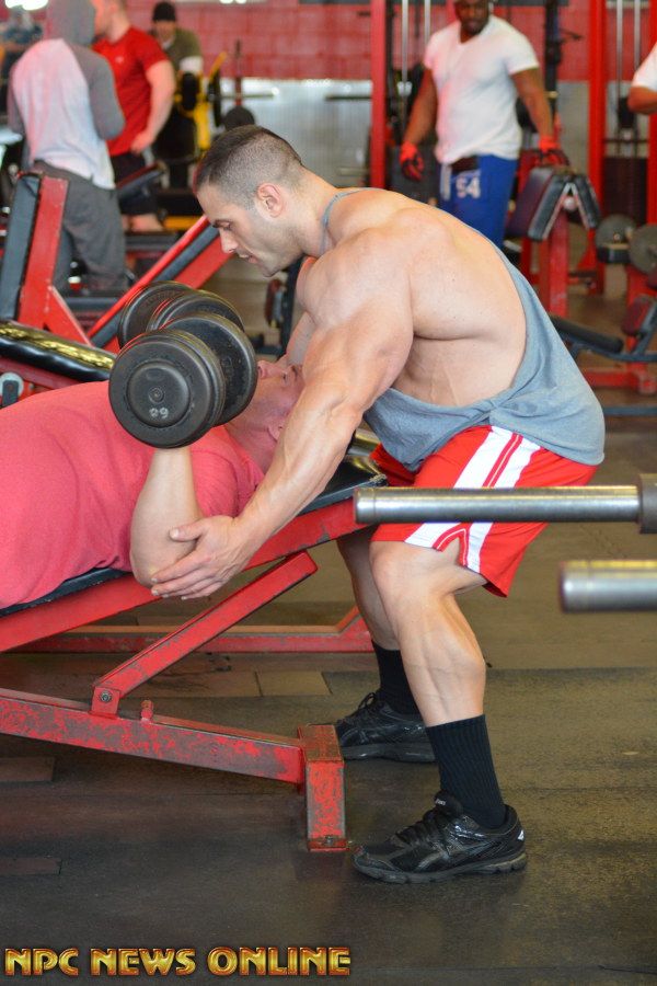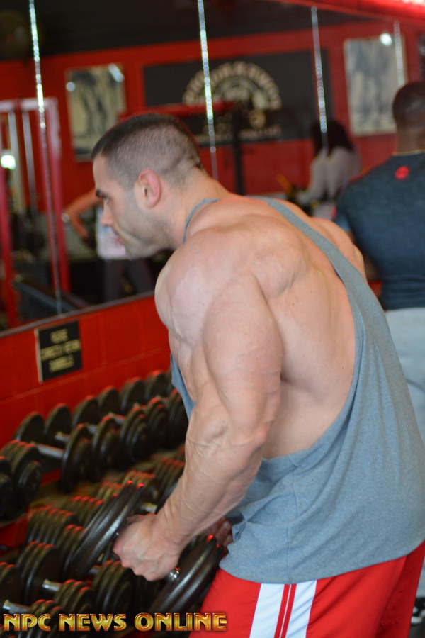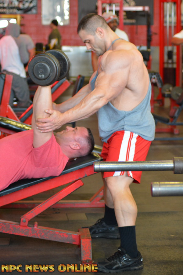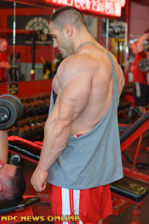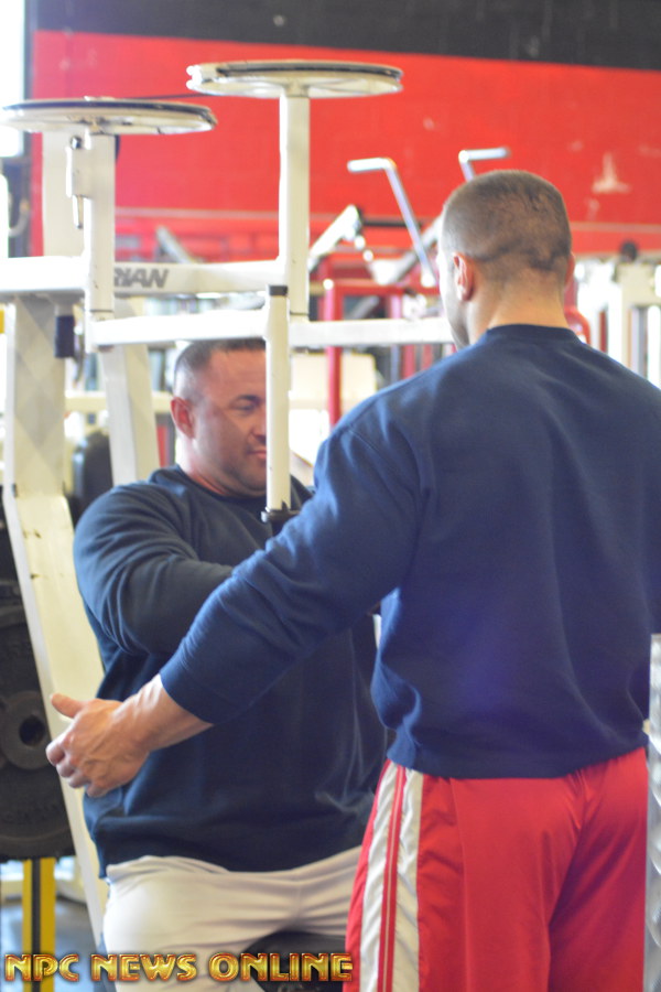 NPC News caught up with IFBB Pro Evan Centopani at the Montanri Bros Powerhouse Gym In New Haven, Connecuit. Evan is 2 weeks out from the 2016 Arnold Classic. He placed 5th at last years Arnold. Check out these photos from his training session at the SuperGym with training partner Ben. Evan is a sponsored athlete of Universal Nutriton. Click here For Evan Centopani Contest Photos.