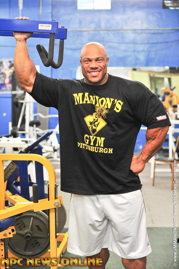 2x IFBB Mr. Olympia Phil Heath trained back at the private NPC News Photo Gym in Pittsburgh, (the former Manion’s Gym), the Sunday after the 2013 IFBB North American Championships. Phil was accompanied by his trainer Hany Rambod. Also there was The Prez Jim Manion, Cassie Manion, Matt Lebedda, Rico & Rayyan Barakat, IFBB Pro Dr. Victor Prisk, Dr. Robert Shogry & IFBB Pro Courtney King.