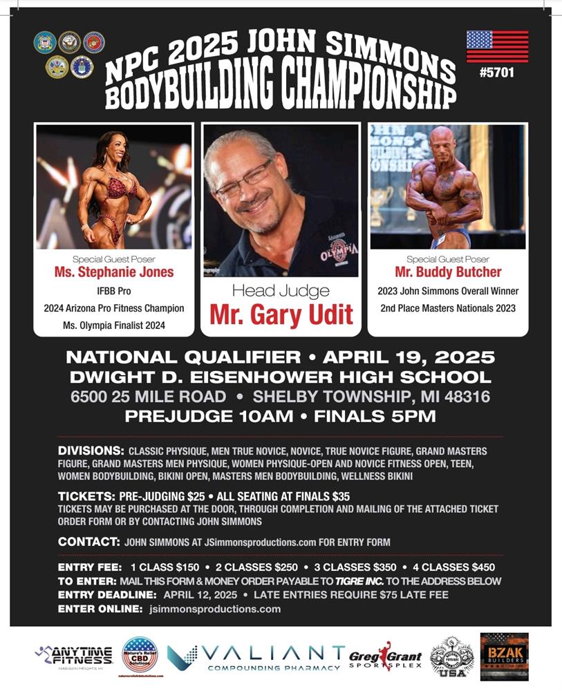 2025 NPC John Simmons Bodybuilding Championships AprilApr 19 2025Shelby Township, MI