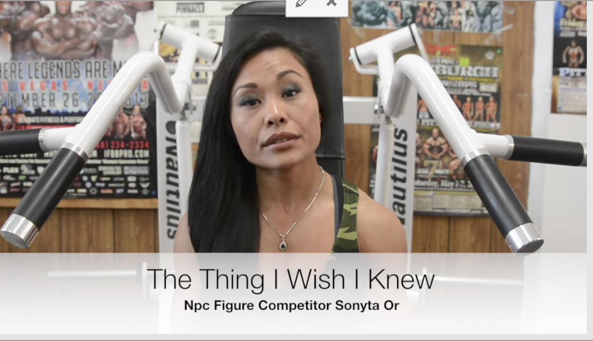 The Thing I Wish I Knew: NPC Figure Competitor Sonyta Or July 4, 2017Features, The Thing I Wish I Knew, Videos, Women's Figure SHARE Facebook Twitter Pinterest The Thing I Wish I Knew: NPC Figure Competitor Sonyta Or Filmed By J.M.Manion at the NPC Photo Gym